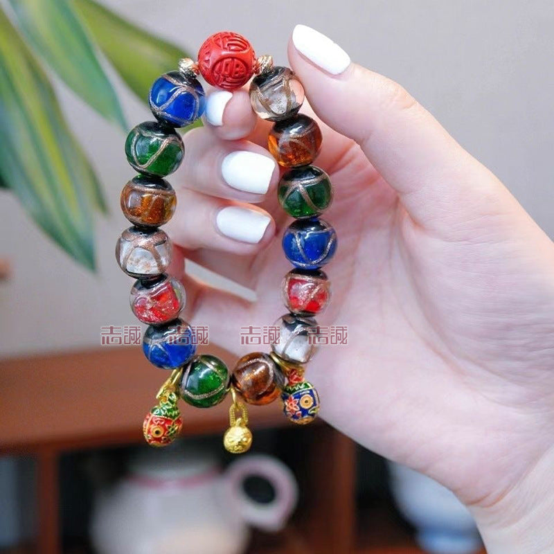 Red Cinnabar Cloud Pattern Lucky Character Bracelet with Incense Ash Glaze, Beijing Style Five-Color Ancient Method Multi-Treasure Gold-Swallowing Beast Bracelet