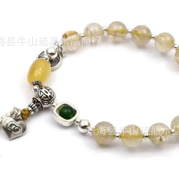Wholesale Natural Crystal Hair Crystal Green Phantom Amethyst Strawberry Crystal Scenic Area Same Style Bracelet Xiaohongshu Douyin Hot Item